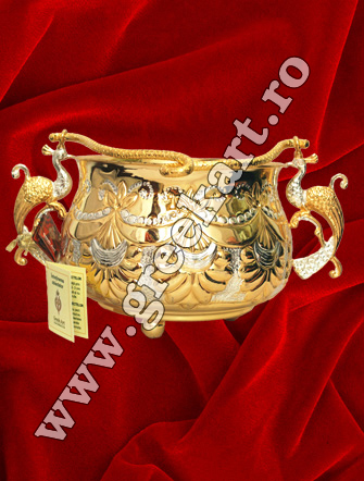 Avem pe galetusa aghiasma, vas agheasma, vas episcopal spalat pe maini, felinar procesiune, vas anafura cu si fara picior, suport cadelnite, felinar strana, cristelnita de cupru aurita. Obiectele sunt grecesti, import grecia de la partenerii nostrii, avand cea mai buna calitate sub aspectul pretului de cost.